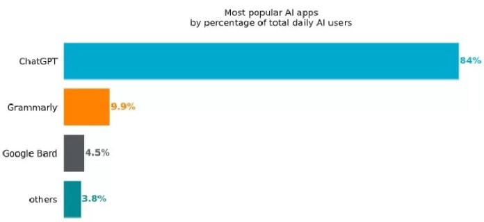 - ChatGPT is the most popular AI app in the enterprise and Google Bard is the fastest-growing AI app in the enterprise, both by a large margin.