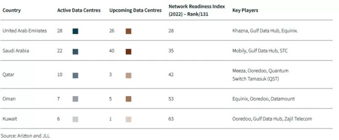 - Key data centre providers in the UAE include Khazna and Equinix apart from hyperscalers and Mobily and STC in Saudi Arabia.